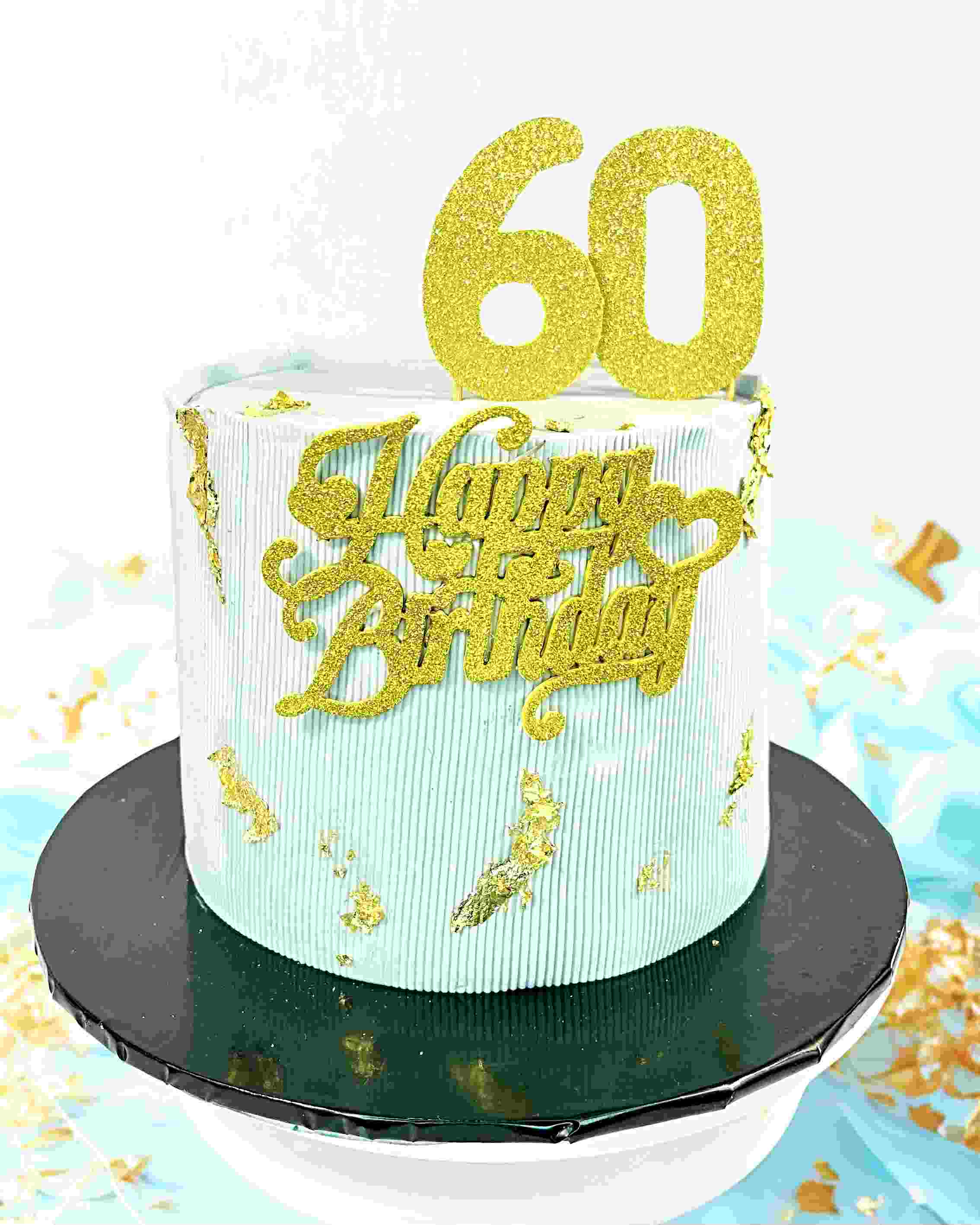 8x6 inch vanilla cake covered in smooth mint-white textured buttercream, finished with elegant gold leaf accents. Perfect for milestone celebrations and serves 12–15 guests. A luxurious but minimalist design suitable for all ages, with customizable toppers for personal touches.